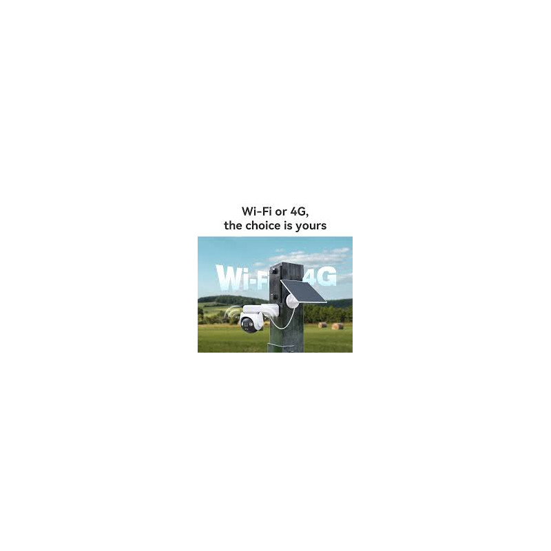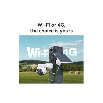 Caméra extérieure 5 MP ultra‑HD avec rotation panoramique motorisée, connectivité WiFi + 4G + batterie solaire intégrée, carte mémoire 64 Go offerte.