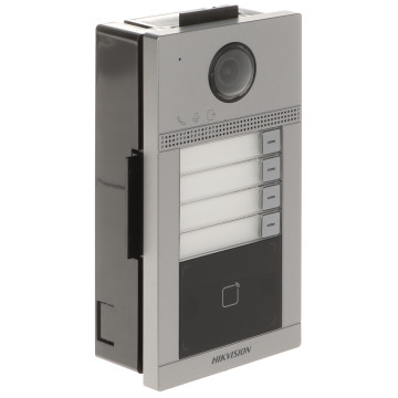 Hikvision DS-KV8413-WME1(B) est une platine de rue IP 4 boutons conçue pour la vidéophonie et le contrôle d’accès des villas ou immeubles. Grâce à sa caméra HD 2 MP, son vision nocturne avec IR, son lecteur de badge MIFARE intégré, et sa robustesse IP65 / IK08, elle propose une sécurité fiable et durable en extérieur. Compatible PoE ou 12 V DC et pouvant se configurer en Wi‑Fi ou Ethernet, c’est une solution idéale pour les installations de surveillance modernes.