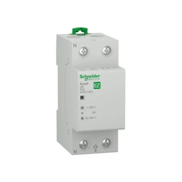 Relais de protection Schneider Electric EZ9C1263 de la gamme Easy9 est un relais de contrôle de tension 1P+N 63 A conçu pour surveiller et protéger efficacement vos installations électriques contre surtensions et sous‑tensions dangereuses. Il coupe automatiquement l’alimentation lorsque la tension sort des plages sûres